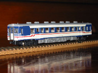 鉄道模型をはじめた頃なぜか購入したキハ52 ある鉄道情報誌を読んでいたところ見つけた 米坂線小国駅に停車中の2両のキハ52の写真 このふたつの偶然がなければ この車両は産まれなかっただろう キハ40系と共に彩色変更 それまで活躍の場がなかったキハ52が 一気にお気に入りに躍り出る だが制作時、ライトレンズを破損してしまい もう一両購入して交換してみた おかげでまた一両のキハ52が宙に浮いている 実車を10年ほど前に見たとき なにか他の新潟色と違和感を感じたのだが 今回製作してみて 前面の青のラインが一本少ないことに気づいた その違和感がなんともいえず可愛い 可愛いっていう表現は変か |