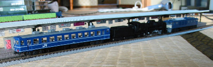 さて完成したオヤ12−1を走らせます 新潟でD51−498を使ったイベントが行われることになった という想定で運行するとすると 高崎所属のオヤ12とD51が新潟に来るので上越線を通ります ということはやはり使用される牽引機はEF641000 これがD51−498を牽引し さらにその後ろにオヤ12−1という3連で運行されると思われます それを再現してみたのだが・・・ D51とEF641000のモーター力が違いすぎて 上手い具合に協調運転をしてくれずギクシャクしてしまっています どちらかを無動力化すれば解決する問題なのですが そんな余裕(金銭的な(なぜなら同一車体のM車T車が必要になる))ありません これはしょうがないのかなあ? |